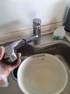 キッチンシャワー水栓水漏れ 工事概要:蛇口修理, 水漏れ エリア:春日井市 ご相談内容 台所シャワ水栓交換 原因及び修理 まとめ キッチン蛇口の水漏れのご依頼でした。 蛇口も年数が経っており、何か所から水漏れしてましたので、交換ご希望でした。 蛇口のシャワー部、水栓スパウト(蛇口本体の回る所)から水漏れしてます。 まず古い水栓を外します。 ↓ 新しいTOTOエコシャワー水栓を取付ます。 ↓ 湯と水の接続をします。 ↓ 作業完了です。 当社にて交換をお任せいただきましたので、お安く工事させていただきました。